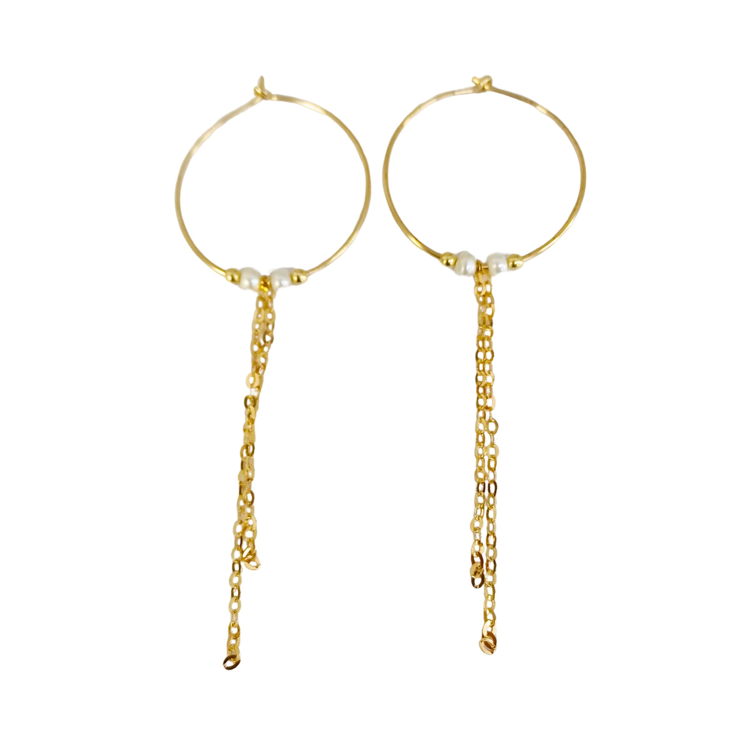 14K GOLD FILLED HOOP EARRING WITH PEARLS