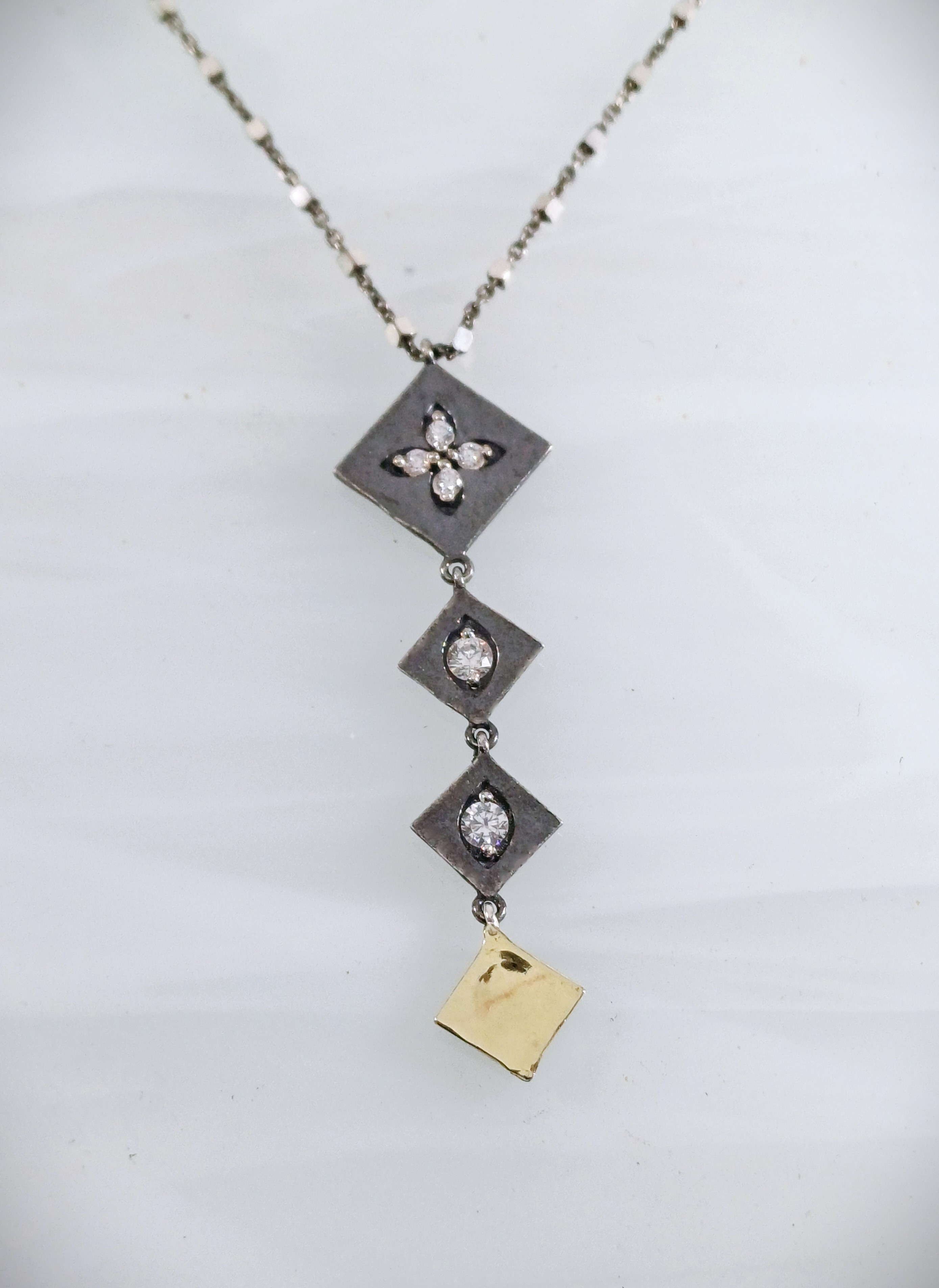 Oxidiezed 925 Silver & 9K Gold Necklace set with CZ