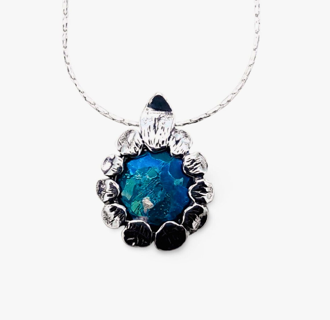 925 SILVER NECKLACE SET WITH ANCIENT BLUE ROMAN GLASS