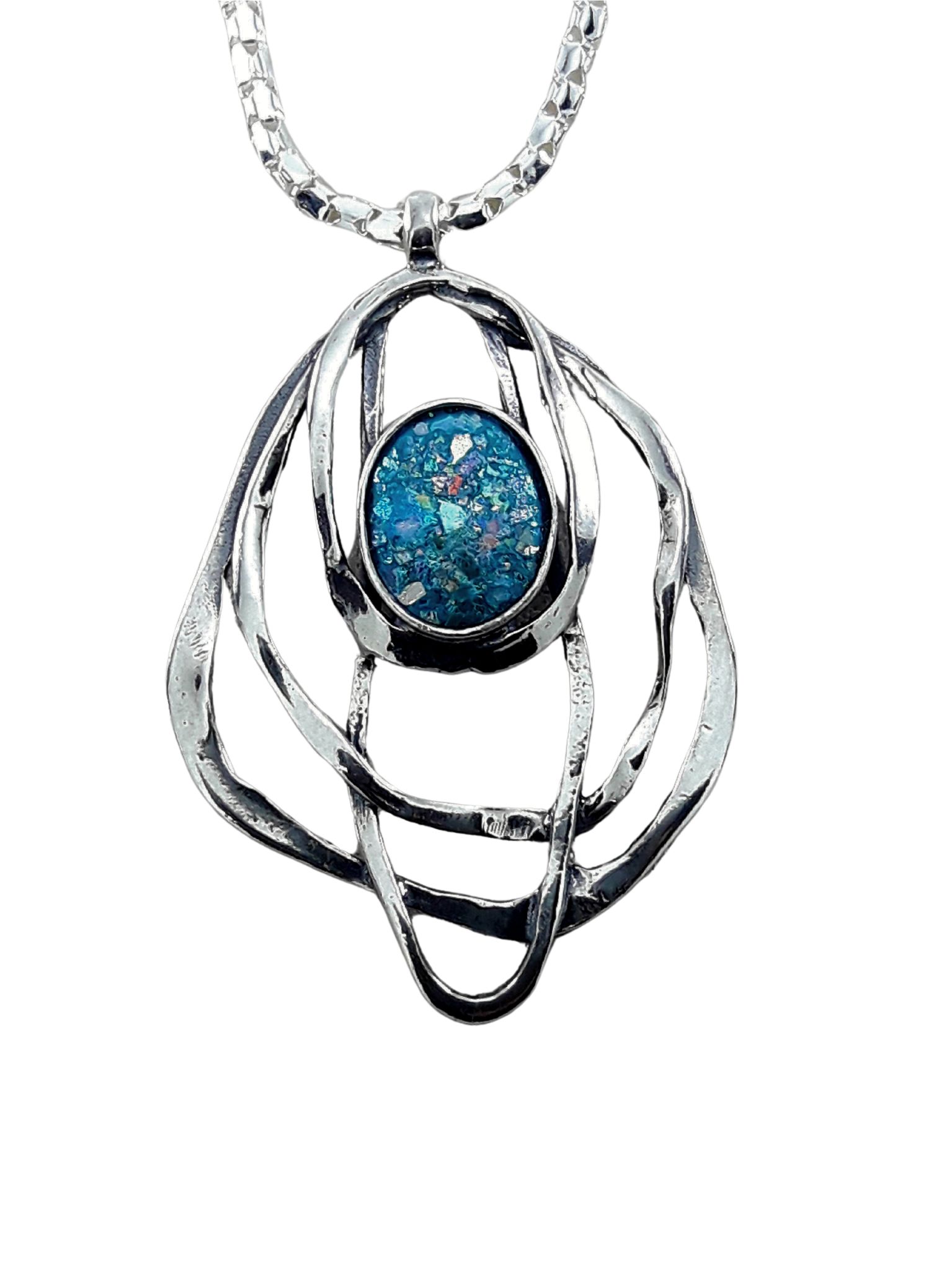 925 SILVER NECKLACE SET WITH ANCIENT BLUE ROMAN GLASS